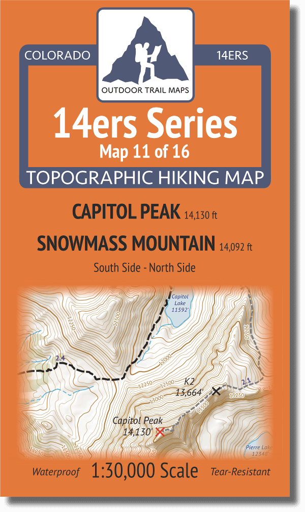 Printed on waterproof and tear-resistant material. Capitol Peak a 14137-foot 4309-meter mountain lies in the western Elk Range west of Aspen and southeast of Glenwood Springs and Interstate 70. Capitol Peak is a 154 mile lightly trafficked out and back trail located near Carbondale Colorado that features a lake and is only recommended for very experienced adventurers.